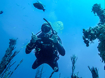 MEET JTJT is a born and raised Texan whose first dive was in a lake. The pursuit of a better and more exciting dive experience landed him in Grand Cayman (where he completed all of this instructor training), and he has never looked back! Previously a mechanic, JT has a love of fast cars and fast boats. As a boat captain, two of his greatest passions are taking the wheel and hunting the colorful lionfish found in the Grand Cayman waters. His favorite dive sites, Ghost Mountain and Big Tunnels, feature dramatic drop-offs that speak to his adventurous spirit. | ![]() |